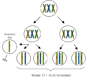If mutations occur post-zygotically, they produce a genetic mosaic. New mutations that arise in the early embryo produce an individual who is a phenotypic/genotypic mosaic. A variable number of cells will carry the mutation and the person may or may not be affected depending on the number and location of the cells which receive the mutation. Such a mutation may or may not be in the person's germ line and the mutation may be present in some germ cells but not all (gonadal mosaicism). If the mutation is in the germ line cells it will be transmitted to the offspring.